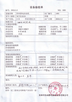 2007年公司通過引進國外先進的靜電涂裝技術(shù),結(jié)合國內(nèi)各類中小型金屬板(帶、絲)冷軋機組的實際應(yīng)用情況,成功的研發(fā)出XCTZ-3型系列金屬板(帶)冷軋靜電涂油機、XCTZ-H101焊絲靜電涂油機、XCTZ-D刀帶靜電涂油機,其高壓力微流量雙流體霧化靜電涂油技術(shù)已在國內(nèi)處于領(lǐng)先地位.每平米0.3克(單面)的涂油量已在實際應(yīng)用中得到滿意的效果.